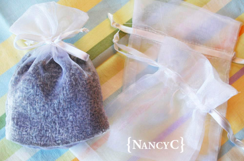 These sachets are nice to use in dresser drawers to keep things smelling fresh, and you can also hang them in closets, using the ends of your drawstring ties or ribbons to loop or tie around a hanger. They make great little gifts, too! You can also attach one to an already-wrapped gift as an added adornment.