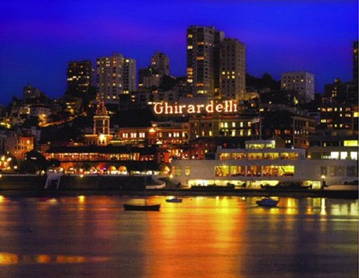 While I was taking this Ghirardelli chocolate taste-testing break, it reminded me of my two visits to San Fransisco and the stops I made both times to the flagship Ghirardelli Ice Cream and Chocolate Shop in Ghirardelli Square. It’s a great place to visit if you’re in the area…the square is also home to many other unique shops and restaurants and is located in a beautiful spot right on the San Francisco waterfront. Here’s a photo, courtesy of GhirardelliSquare.com…