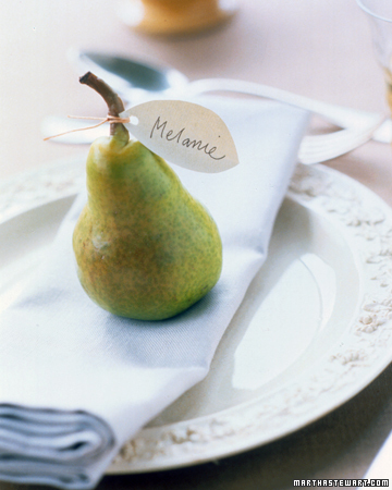 The idea of using a pear (or apple) as a place card is very clever, too!