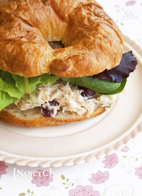 If you’re making this chicken salad for lunch, it’s great served on a croissant, wheat bun, or whole grain bread…if you’re making this for a party or get-together, try serving it on mini-croissants. Or, you may just want to serve a big scoop of it on a bed of lettuce…