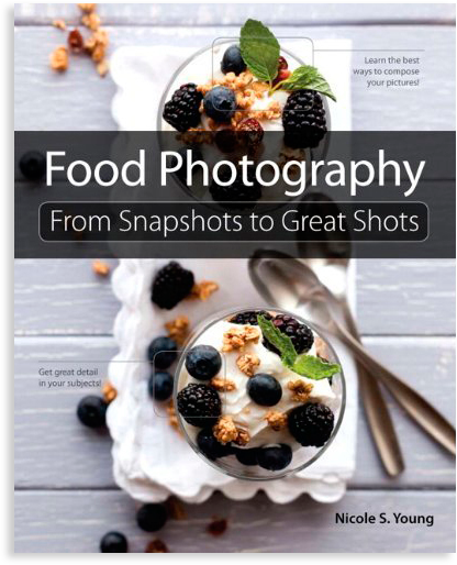 Food Photography: From Snapshots to Great Shots is dedicated to “…foodies, food bloggers, home cooks, and chefs…and to anyone who craves a delicious meal, chases beauty, and wants to make people hungry with their photographs.” That certainly includes me! 🙂 So I was glad to have the chance to review this very helpful, comprehensive guide to taking better food photos. Author Nicole S. Young specializes in commercial photography and is an accredited Adobe Certified Expert, so she has lots of expert advice and tips to share!