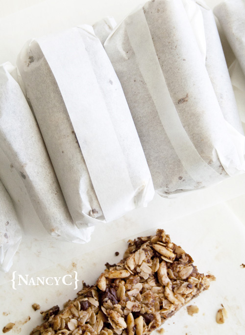 If you’re not eating the granola bars right away, wrap them up individually in wax paper or a waxy type of sandwich wrap (I got mine at Sam’s Club).