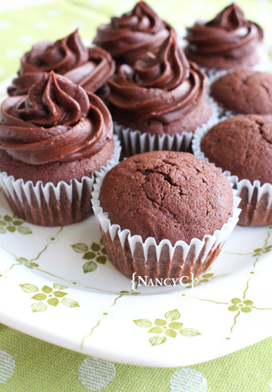 CHOCOLATE CUPCAKES WITH FUDGY FROSTING by NancyC, adapted from Martha Stewart