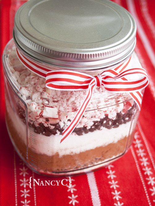 If you like making homemade Christmas gifts, here’s a great idea I found at MyRecipes. Just about everyone loves hot cocoa, so you really can’t go wrong giving this! You can get jars like the one above at Wal-Mart, or you can use whatever kind of jars you like. This recipe makes enough to fill a 1-quart jar (12 servings; I upped the amount of the mini chocolate chips and crushed peppermint candy from the original recipe, since I had some extra room in my jar). If you want to use smaller jars, you can divide the mixture up equally between those. A ribbon tied around the neck of the jar makes this hot cocoa gift really festive, too. And you’ll need to add a tag that gives directions on how to make the cocoa (directions are included in the recipe below).
