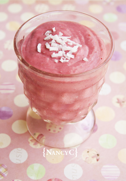 RASPBERRY BANANA COCONUT MILK SMOOTHIE by NancyC, adapted from Del’s Cooking Twist