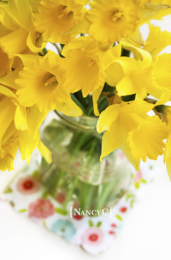 This Easter Day has been very cold, cloudy, and rainy–it feels more like winter here than spring! I hope you’re having a warmer, sunnier day. At least for those of us who have rain or snow, we can enjoy having pretty spring flowers inside, right? These daffodils were growing wild in a field, so I picked some the other day–they sure brighten things up!