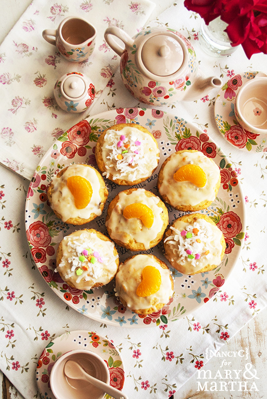 I love everything, Nancy. It’s been a while since the last time I’ve eaten orange muffins. I love the plate/tea set, too. 🙂