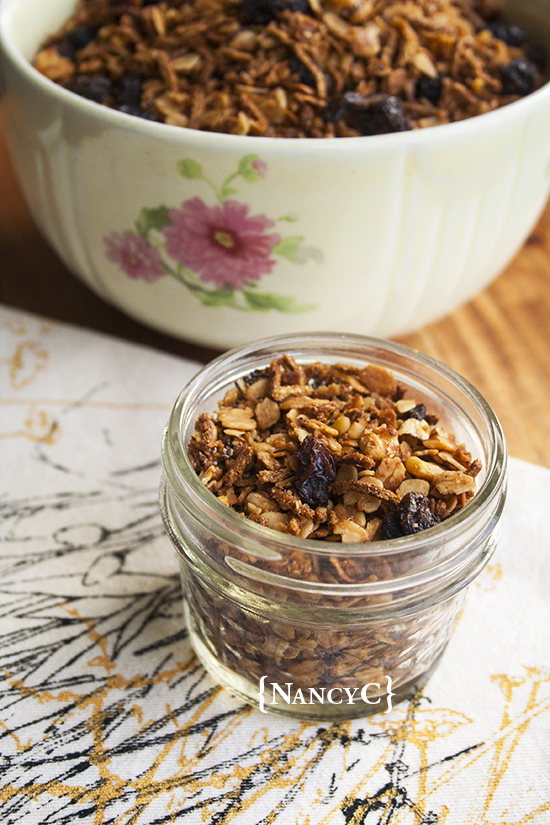 I’m a big fan of homemade granola and I usually make it on Saturday mornings. I bake up batches of it year ’round—in the cold weather seasons, I love how the aroma of the granola fills the kitchen, as well as how cozy the warmth from the oven feels as it bakes! And in the warm weather months, I usually get up extra early to make it so the granola bakes in the cool of the morning—before the sun and mid-day heat rise.