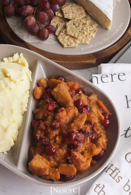 If you’re in need of another side dish for your menu, these colorful Cranberry Sweet Potatoes would look great on your holiday table—and they taste great, too! They’re sweetened with a little maple syrup and brown sugar, and have a touch of tartness from the fresh cranberries. It’s a great combination of flavors!