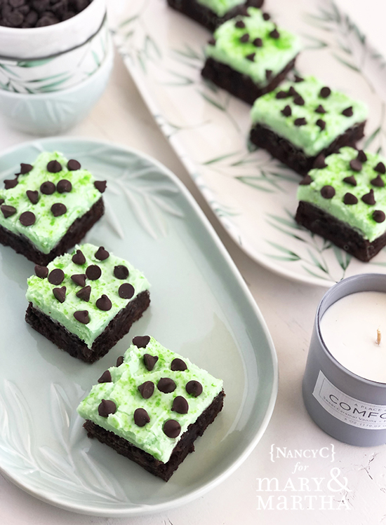 If you want to make these brownies even more festive, you can add sprinkles or some decorating sugar to the top. I had some green decorating sugar, so I used that. I made these brownies with St. Patrick’s day in mind, but they’re a wonderful treat the entire year!