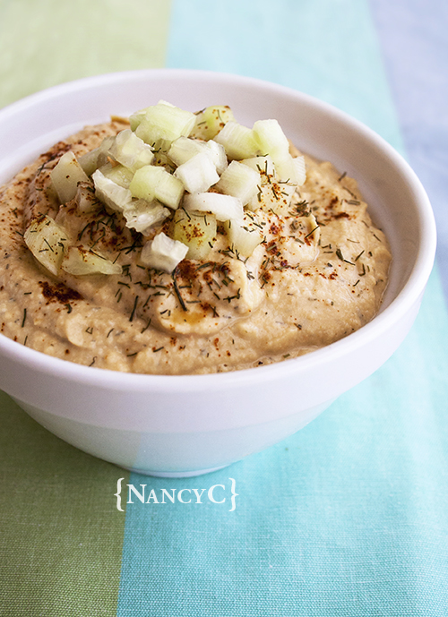 Here’s another recipe you can use some of your garden cucumbers in! Or, if you’re like me, the cucumbers you buy at the Farmers’ Market! If you’ve never tried making hummus before, this would be a great time to try it out—you can whip it up in a blender or food processor—it’s very easy to make! This hummus has a mild cucumber and dill flavor. iIf you really like dill, you might want to add in a little more for a stronger dill flavor.