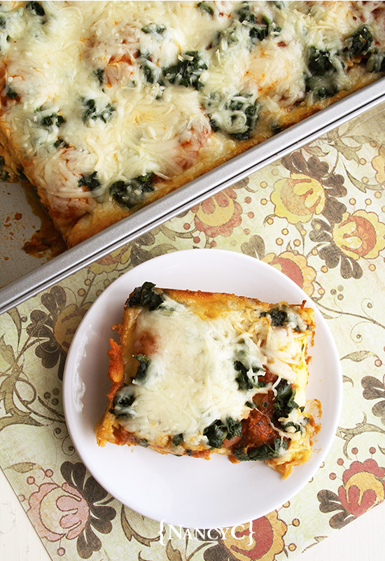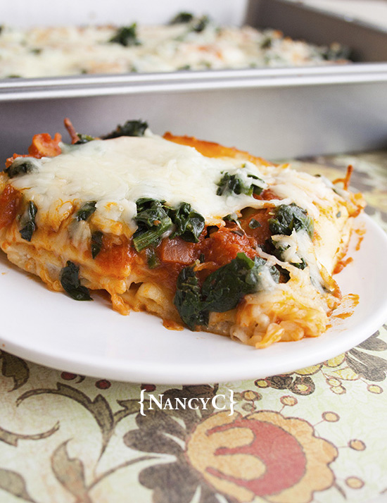 This lasagna is so yummy and cheesy and tastes especially good on a chilly day—it really warms you up! And you’d never realize when you taste it that it’s so easy to make! Don’t you love recipes like that, when the end result seems like it took hours to make—but in reality comes together in no time? Do you have any favorite recipes like that?
