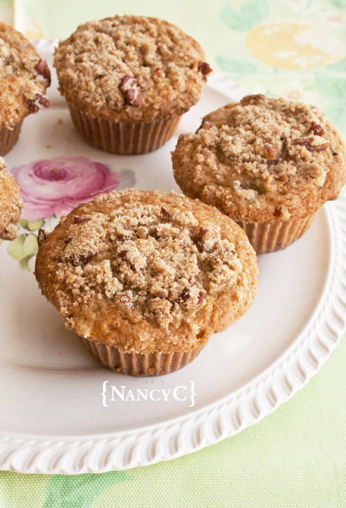 Spoon batter into your prepared muffins cups, filling cups about 3/4 full, and top each muffin with about 1 Tablespoon (I used slightly less than 1 Tablespoon) of the Pecan Streusel Topping (see recipe below).