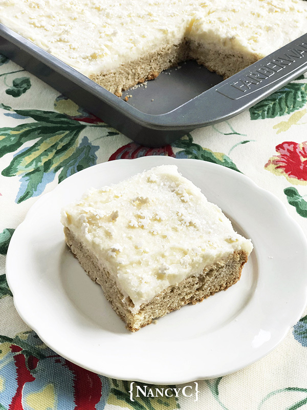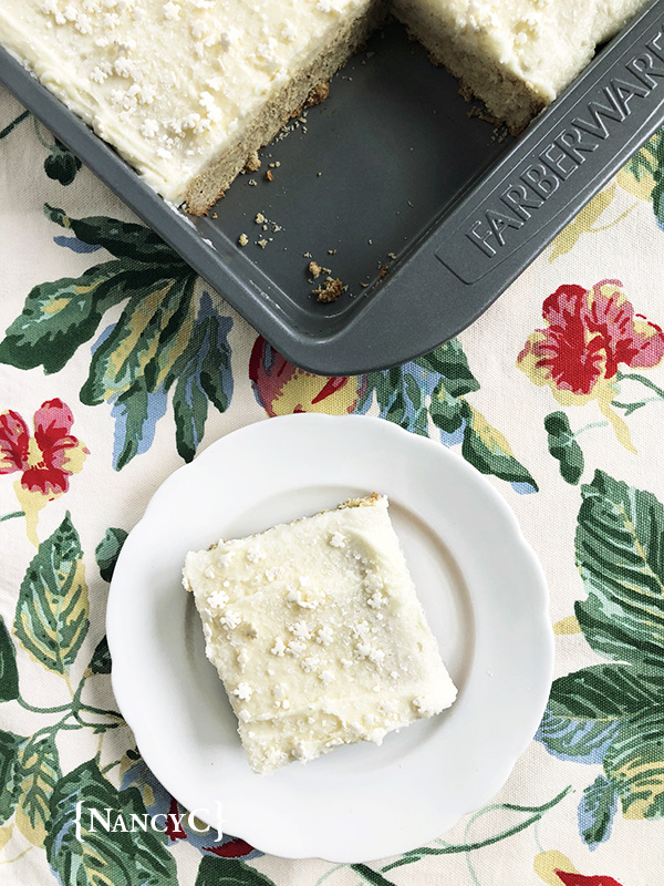Here’s a yummy treat if you have any extra eggnog! If you’re a fan of this holiday beverage and if you like lots of frosting on your cookies, then you will enjoy these Eggnog Cookie Bars—they have a wonderful eggnog flavor and you could say that they are generously frosted! 🙂